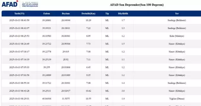 13 EKİM 2025 DEPREM OLDU MU?